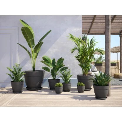 Der Pflanztopf ist frostbeständig und UV-geschützt, wodurch er sowohl im Innen- als auch im Außenbereich verwendet werden kann. Er besteht aus leichtem, recyceltem Material und ist zu 100 % recycelbar.