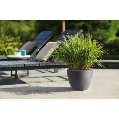 Der Elho Blumentopf Pure Soft mit Rollen Anthrazit ist ein stilvoller und praktischer Blumentopf für drinnen und draußen. Dieser leichte Blumentopf hat einen Durchmesser von 40 cm und ist durch die Rollen an der Unterseite einfach zu bewegen. Dieser Topf kommt mit Gräsern und kleinen Pflanzen perfekt zur Geltung. Die runde Form sorgt dafür, dass der Topf in jede Einrichtung, auf jede Terrasse oder jeden Balkon passt. Und gleichzeitig ist er wunderbar mit anderen Größen aus der Pure Round-Kollektion zu kombinieren. Der Topf ist aus hochwertigem Kunststoff gefertigt, wodurch er in die pralle Sonne gestellt werden kann – ohne, dass die Farben verblassen. Darüber hinaus ist er einfach sauber zu machen, wetterbeständig und für Temperaturen bis zu – 40 Grad geeignet. Sollten Sie den Topf aus Versehen einmal umstoßen oder fallen lassen, ist dies kein Problem, denn der Pure Soft Round von Elho ist unzerbrechlich! Möchten Sie diesen Blumentopf draußen verwenden, dann vergessen Sie nicht, das Bohrloch an der Innenseite des Topfes durchzubohren. Dies sorgt dafür, dass das überschüssige Wasser abfließen kann und die Wurzeln nicht verfaulen.