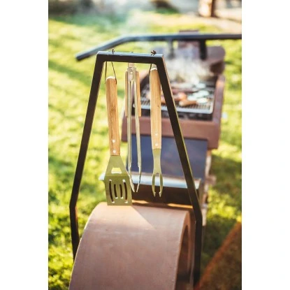 Die Ferrum Art Design Sissybar für die Grillstelle Motorrad ist in Schwarz lackiert und ein Muss für den Grillchef. An dieser Sissybar kann das Grillbesteck bequem stilsicher aufgehangen werden, und sie haben das Zubehör stets griffbereit untergebracht. Durch die schwarze Lackierung hebt sich diese auch farblich von der Feuerstelle ab.