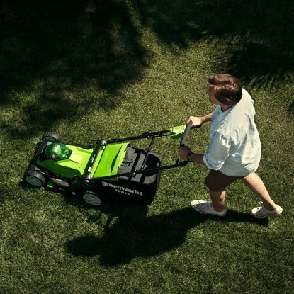 Der Akku-Rasenmäher G40LM41K4 von Greenworks eignet sich für kleine bis mittelgroße Rasenflächen. Der Akku-Mäher ermöglicht einen kabellosen Betrieb und bietet somit maximalen Bewegungsfreiraum beim Mähen.