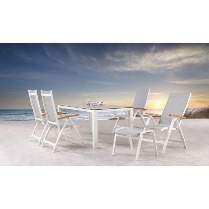Der komfortable Gestellrahmen ist komplett aus Aluminium und somit absolut korrosions- und witterungsfest und leicht im Handling. Das Gestell ist pulverbeschichtet und in zwei Farben erhältlich. Ergonomisch geformter Sitz und Rückenlehne mit atmungsaktiver Bespannung aus reißfestem Ergotex-Gewebe. Der Hocker ist stapelbar.