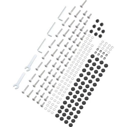 Das 217-teilige Montageset dient zum vollständigen Aufbau des Eck-Diningsets Garnet. Es verbindet die einzelnen Komponenten der Gartenmöbel miteinander und sorgt für eine sichere Nutzung. Der Befestigungssatz enthält Schrauben in unterschiedlichen Längen sowie Unterlegscheiben und Muttern. Gefertigt sind sie aus robustem und rostfreiem Stahl. Dazu gehören ebenfalls Abdeckkappen aus schwarzem Kunststoff zur Verkleidung der Schraubenköpfe und Muttern. Das zur Montage benötigte Werkzeug ist bereits im Lieferumfang enthalten.