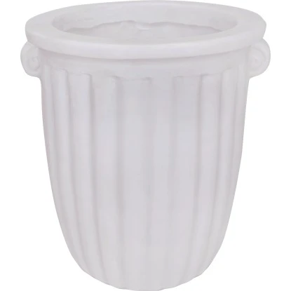 Der dekorative Pflanztopf lässt sich mit Grünpflanzen und Blumen bepflanzen und ideal im Außenbereich aufstellen. Unter Verwendung eines Untersetzers kann er auch im Innenraum platziert werden – ob auf der Kommode oder Fensterbank. Der Topf überzeugt durch eine witterungsbeständige Qualität und ist aus Polyresin gefertigt. Mit seiner modernen Optik in Weiß und strukturierten Oberfläche ist er ein echter Hingucker. Seine Maße betragen 21 cm x Ø 20 cm.